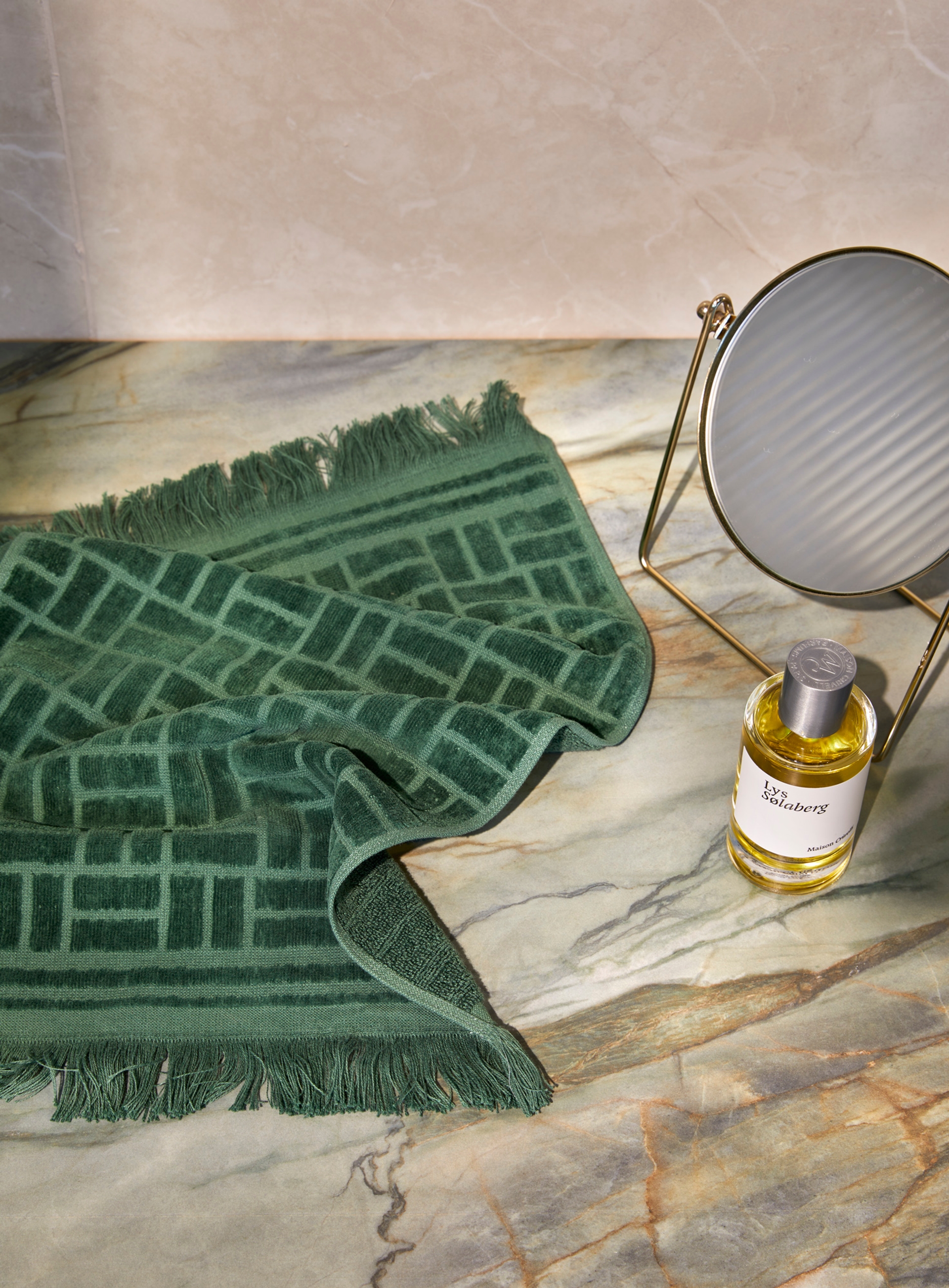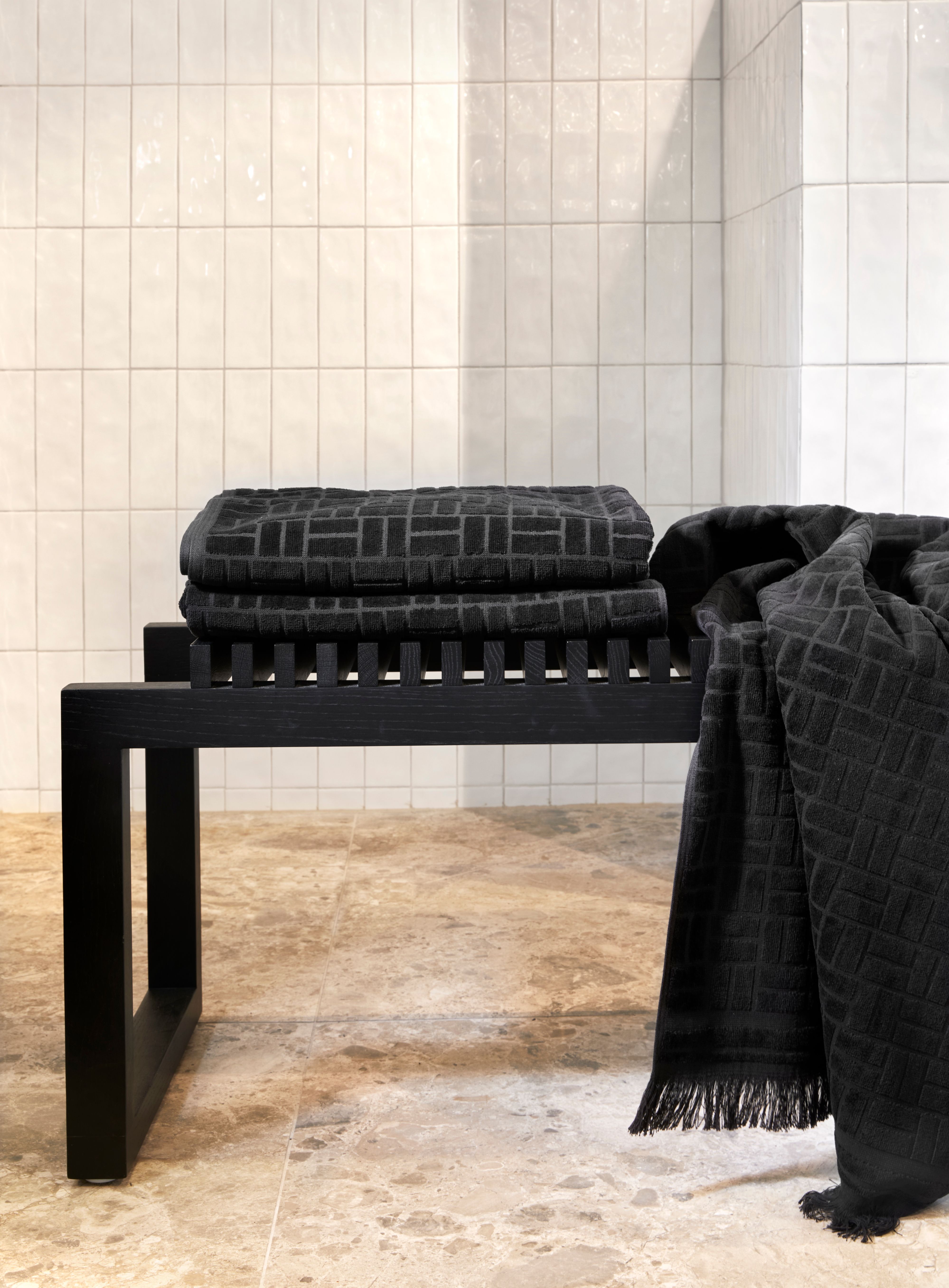 Nyheten Boutique er et lekkert håndkle for deg som setter pris på det lille ekstra. La deg forføre av det elegante designet og den myke frottévelouren i 100% bomull. Det geometriske mønsteret i vevingen og frynsene langs kanten er elegante detaljer, som garantert blir lagt merke til.