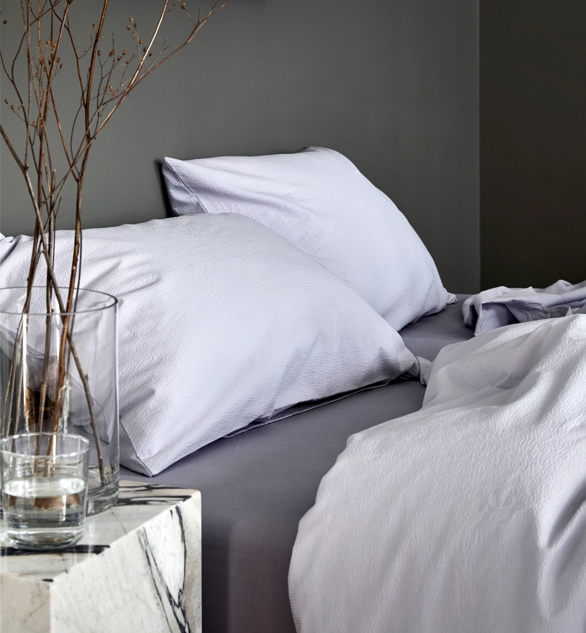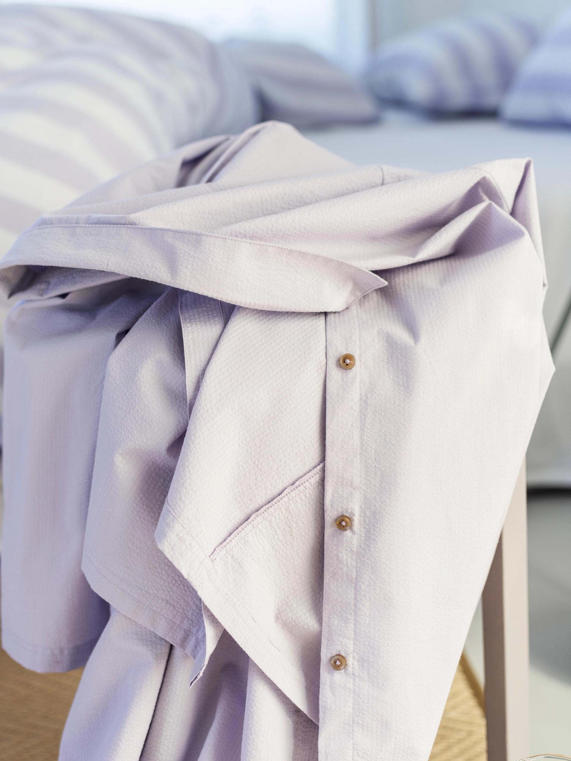 I fargen lavendel finner du en blanding mellom den unge, tøffe rosatonen og den klassiske voksenheten du finner i blånyanser. Lavendel, og andre lillatoner passer særlig godt på soverommet på grunn av nettopp denne evnen til å kombinere to verdener. De rette nyansene av lavendel symboliserer makt og luksus. Luksusfølelsen ser du spesielt igjen i satengen til Catharina - eller når morgenkåpen Svanen i lavendel brer om kroppen en sen helgemorgen.