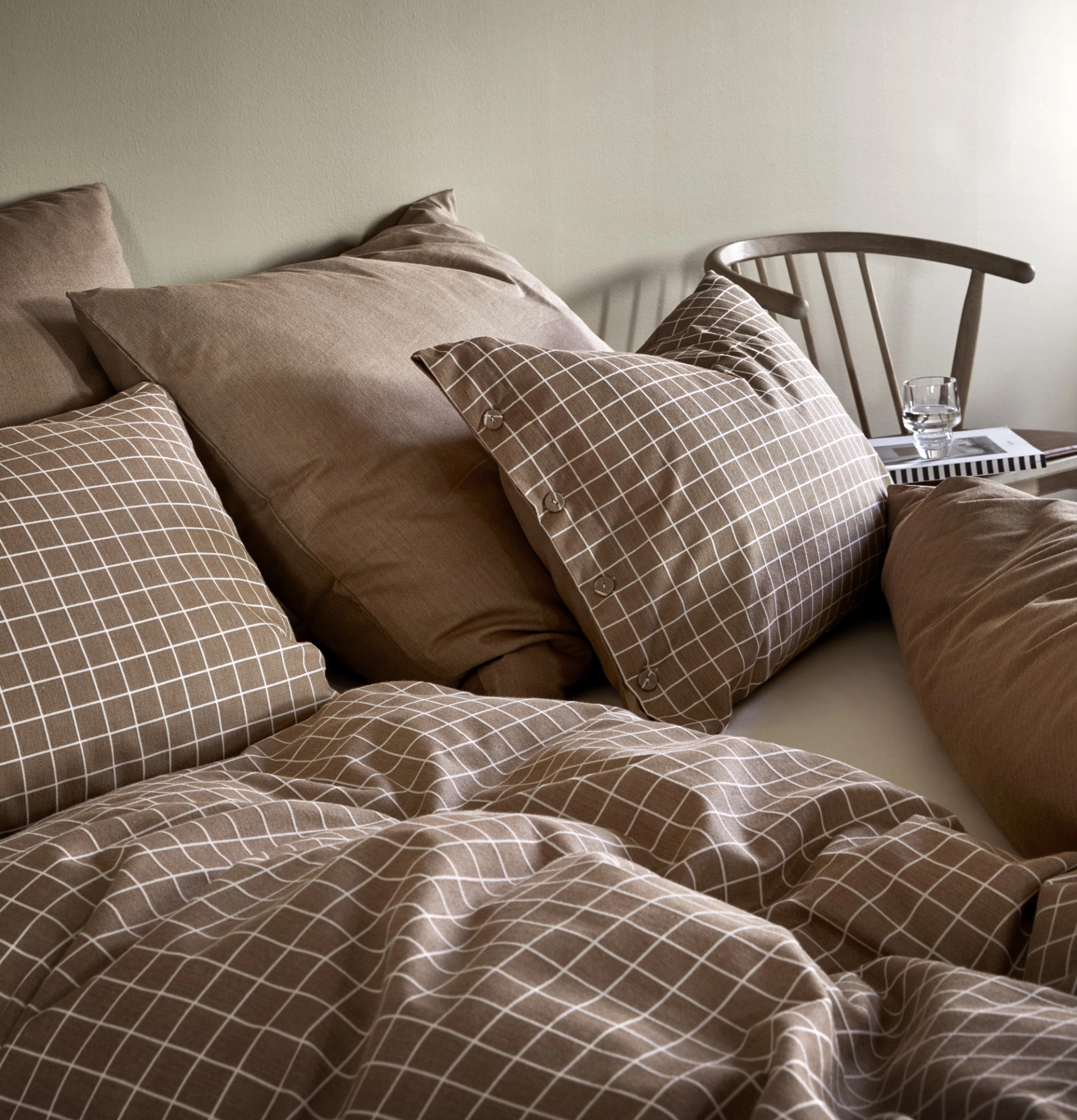 Prikken over i´en på soverommet er når laken og putetrekk matcher sengetøyet. Denne sesongen kommer den populære, og myke Frøya-serien i farger som passer til det smårutete sengesettet Frans.