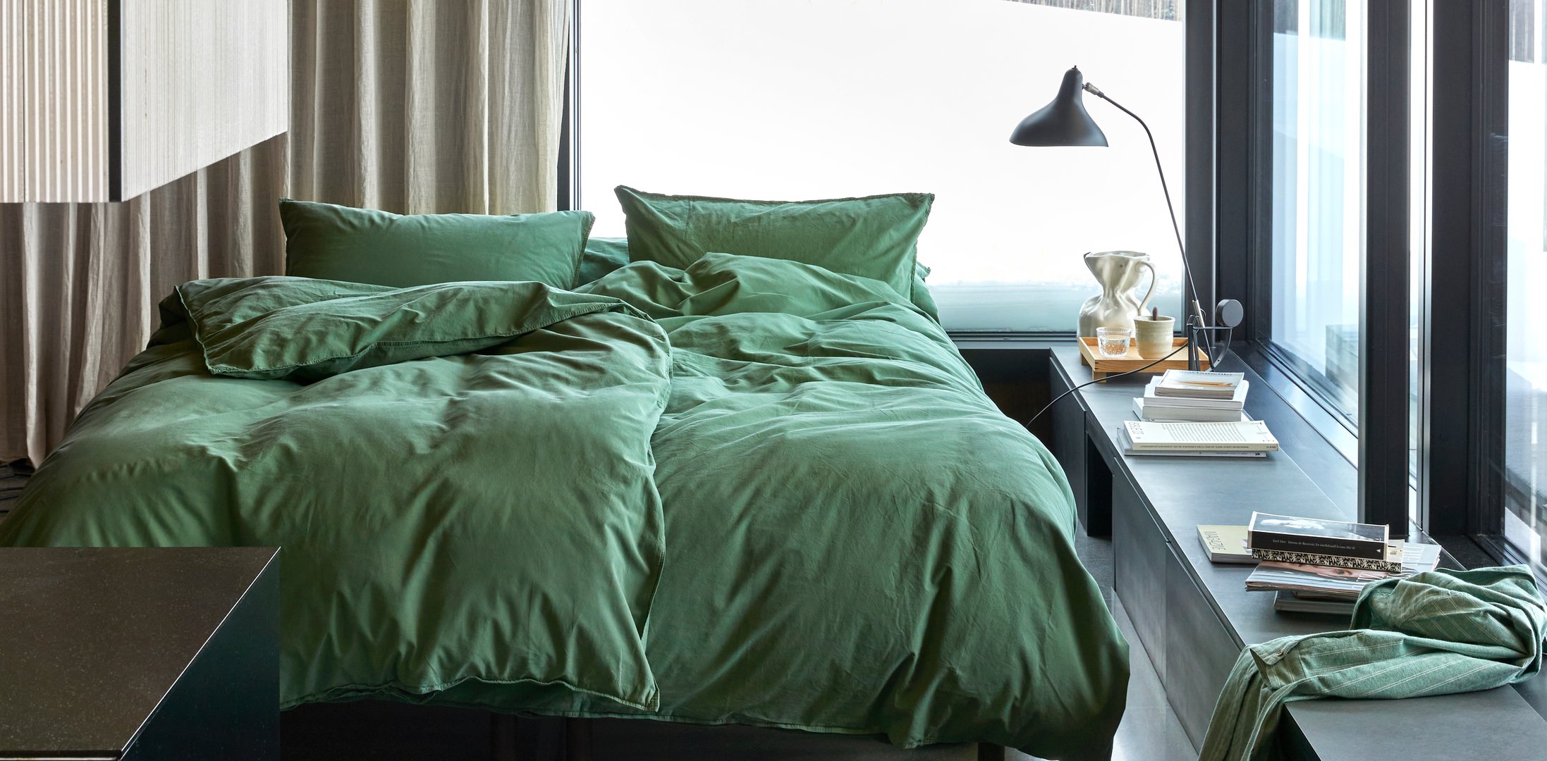 Grønt sengetøy bringer naturens ro inn i hjemmet ditt. Denne delikate fargen, inspirert av skogens frodighet, skaper en beroligende atmosfære som fremmer avslapning og velvære. Grønt sengetøy soverommet et behagelig og harmonisk preg, ideelt for en god natts søvn.