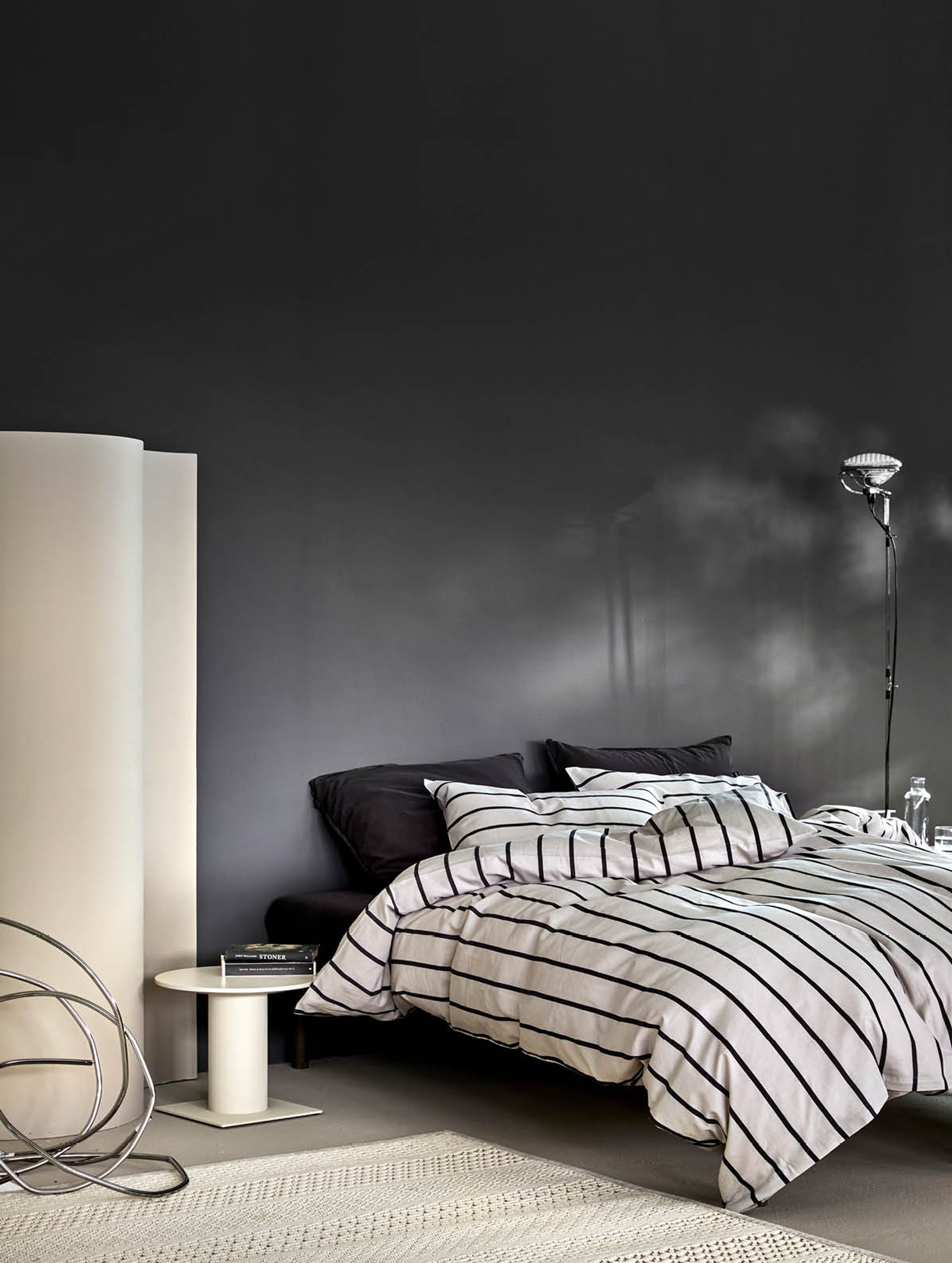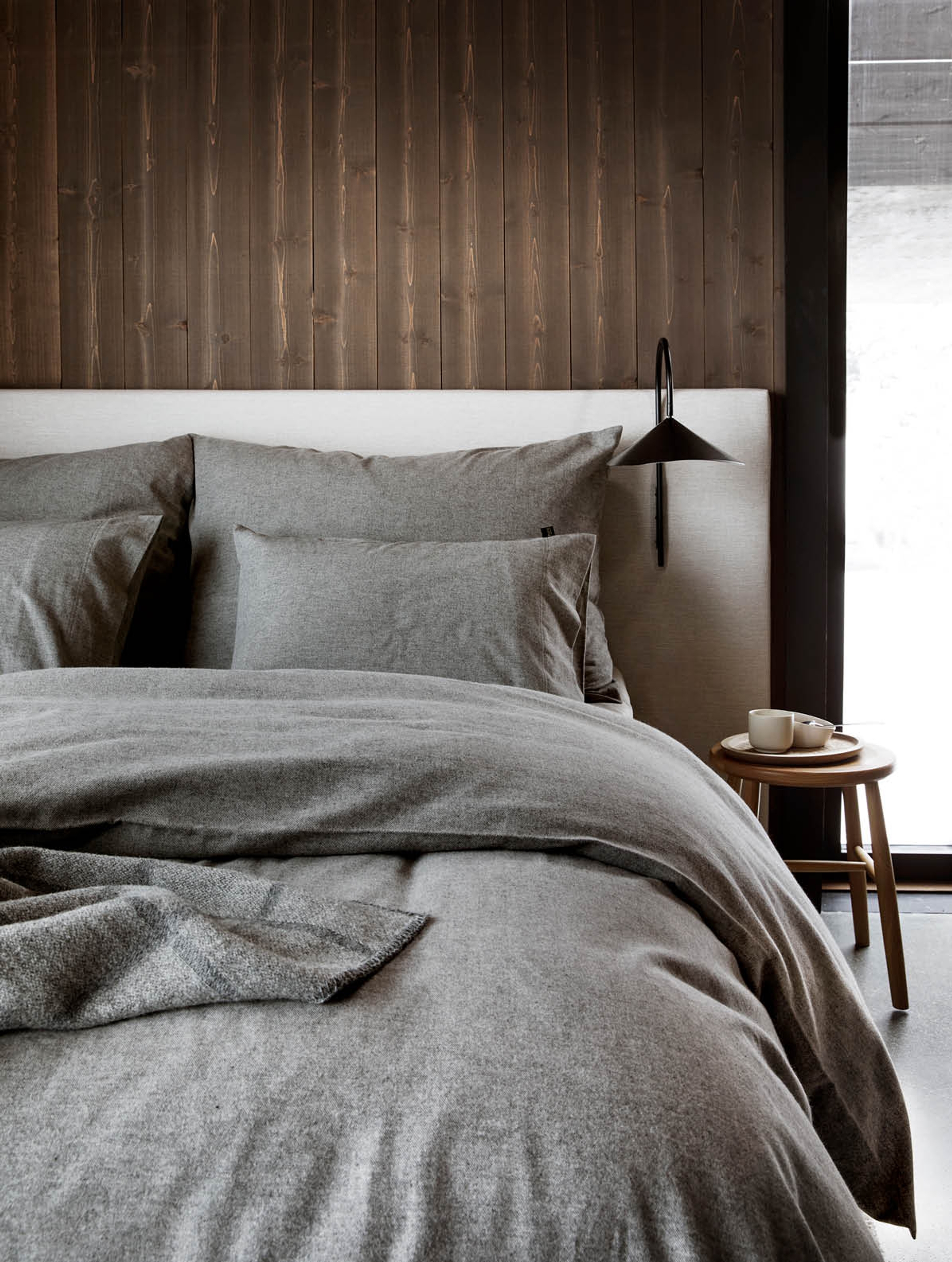 Dempede og varme gråtoner som skaper et lunt, elegant og sofistikert uttrykk. Dempet sort er vakker i møte med varme, nøytrale beigetoner.