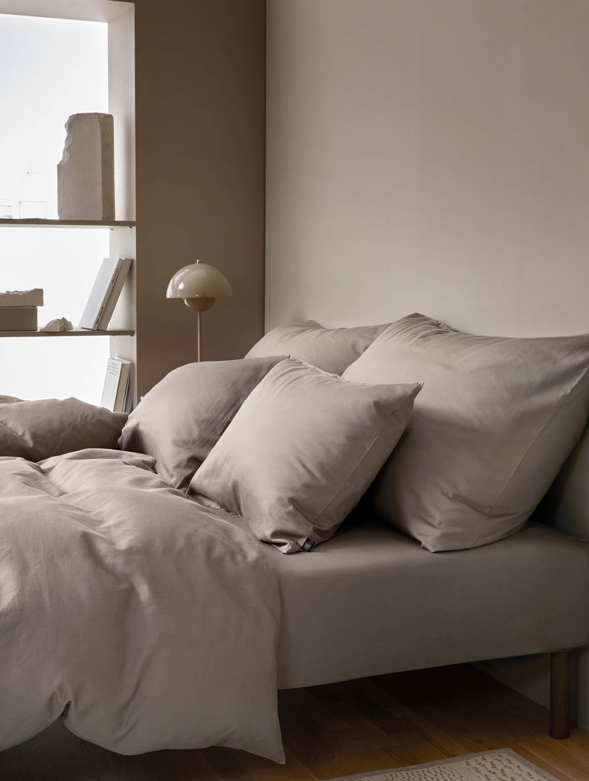 Høies flanell er laget av ekstra fin bomull, som er børstet for å gi den myke og deilige overflaten. Børstingen gjør at stoffet føles behagelig mot huden og ser lunt, koselig og innbydende ut. Flanellsengetøy isolerer og varmer godt, og egner seg ypperlig på friske høstkvelder og mørke vinternetter.