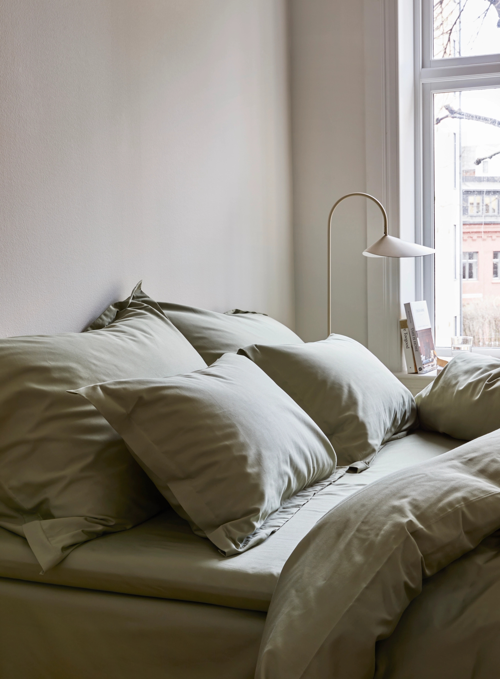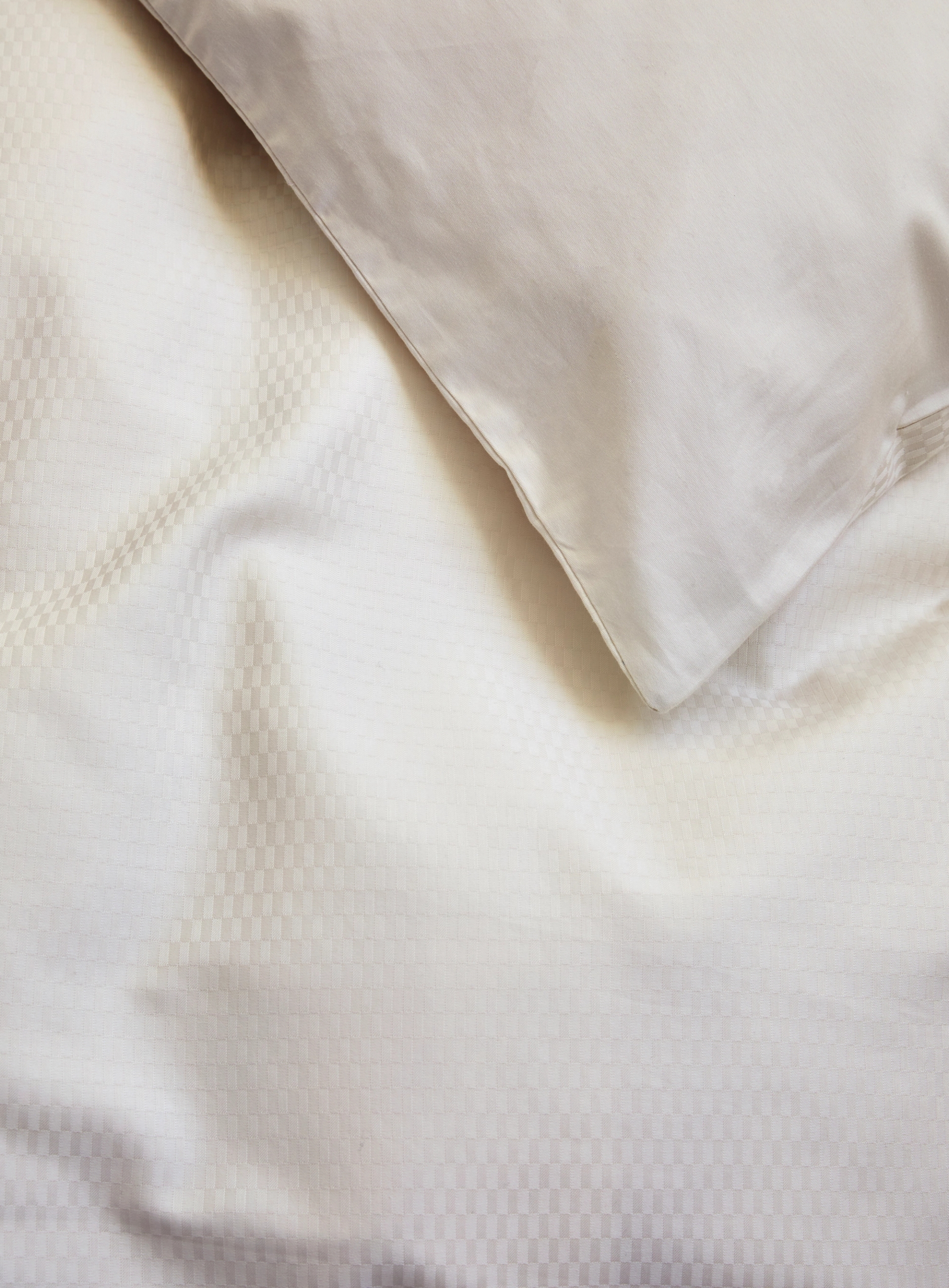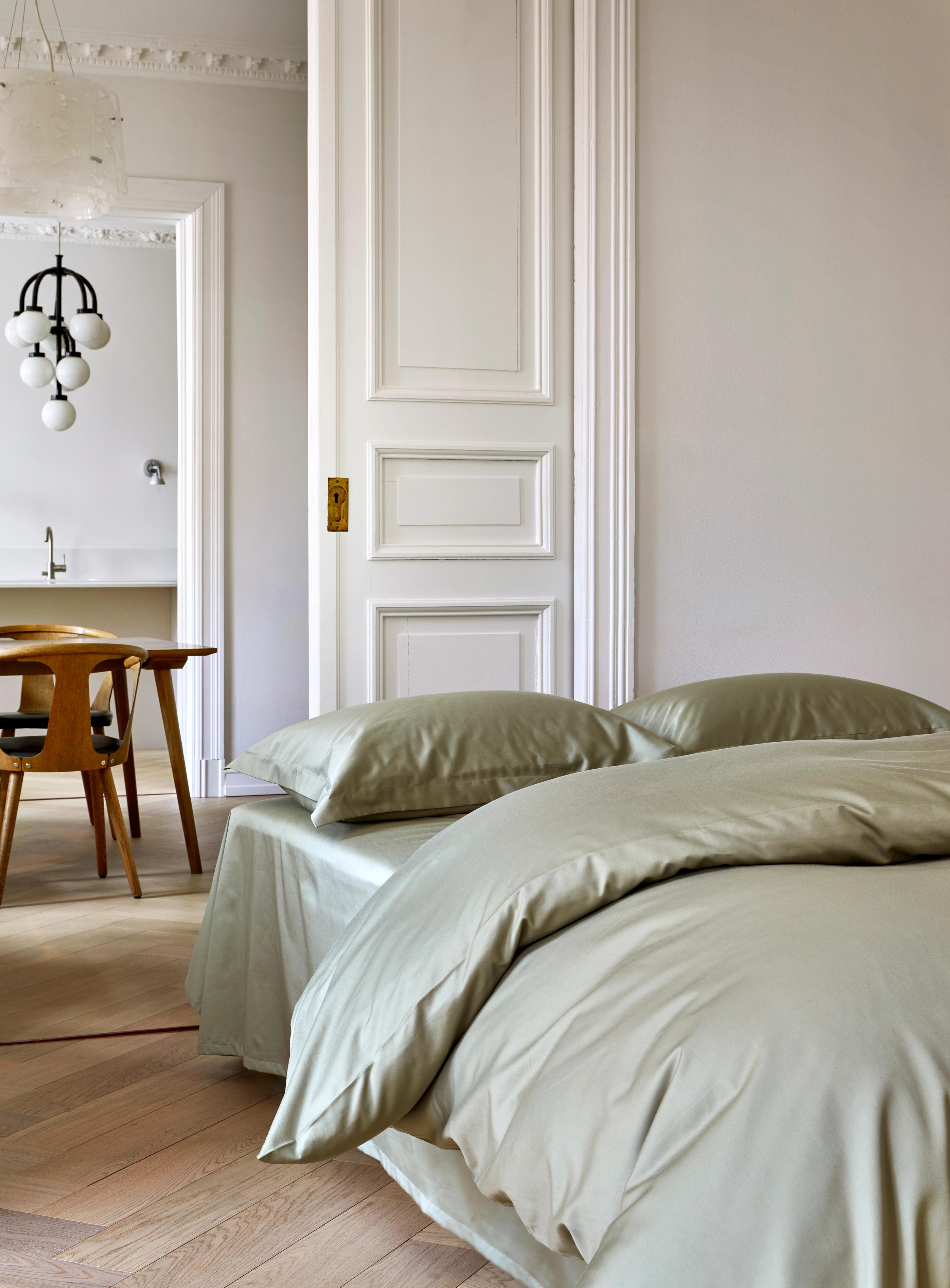 Senk skuldrene og gli inn i en magisk drømmeverden. Satengvevingen gir de lange fine bomullstrådene en særegen glans og er myk og behagelig mot huden.