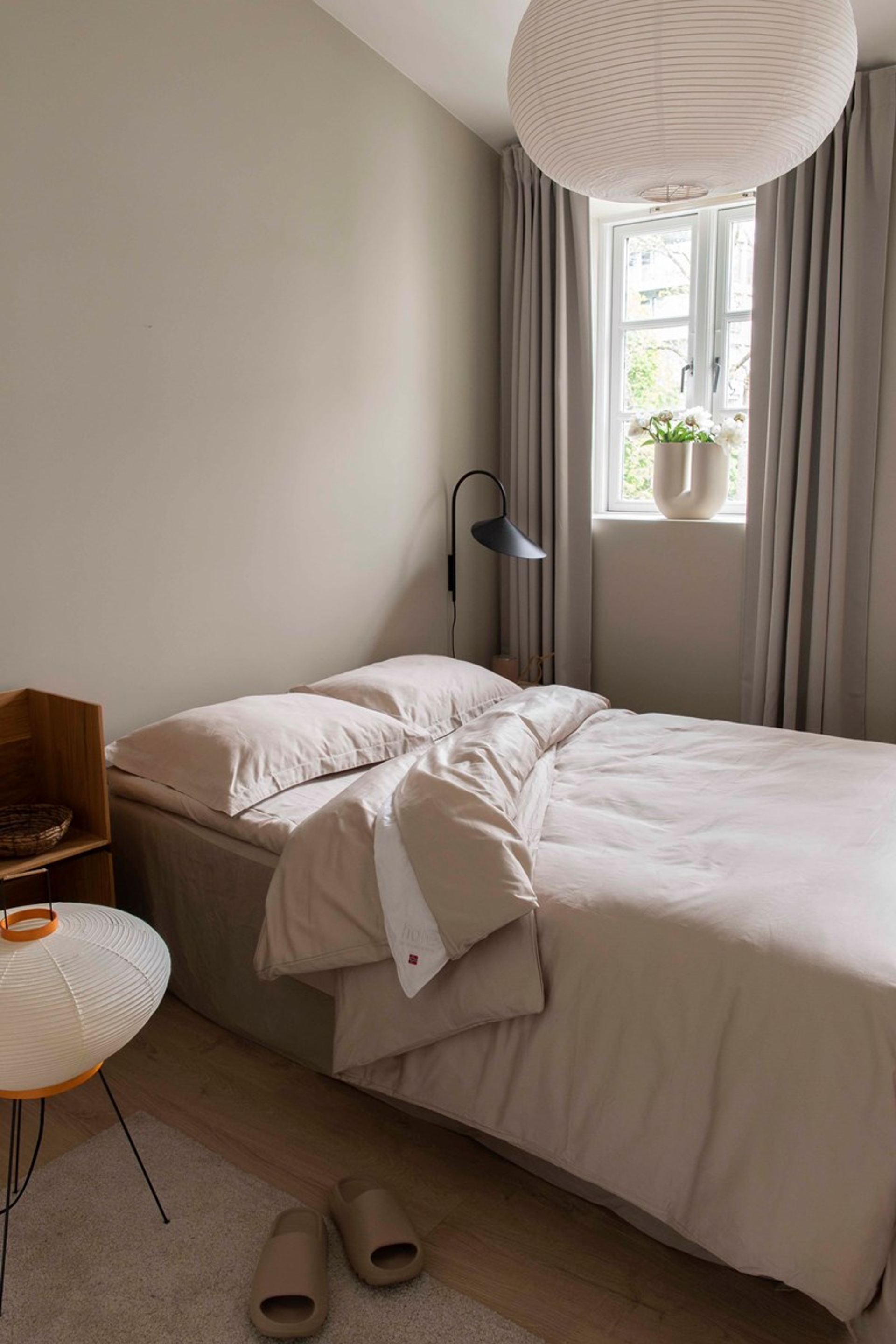 De fleste liker at soverommet er malt i mørke farger. Det kan være fint det og, men for oss er det perfekte soverom lyst, koselig, minimalistisk og lunt. Vi elsker å bruke bordlamper/gulvlamper rundt omkring for å skape denne lune og koselige atmosfæren. Hvordan man rer opp sengen har også mye å si for atmosfæren.