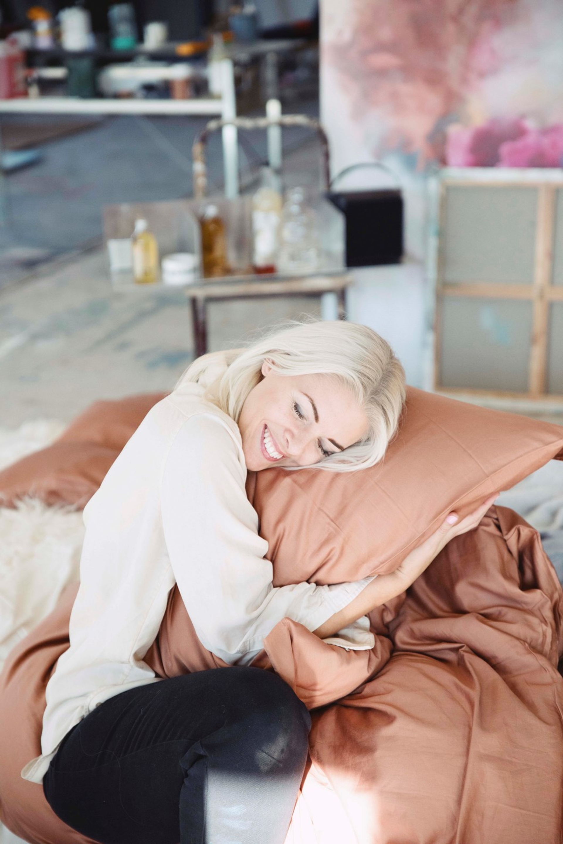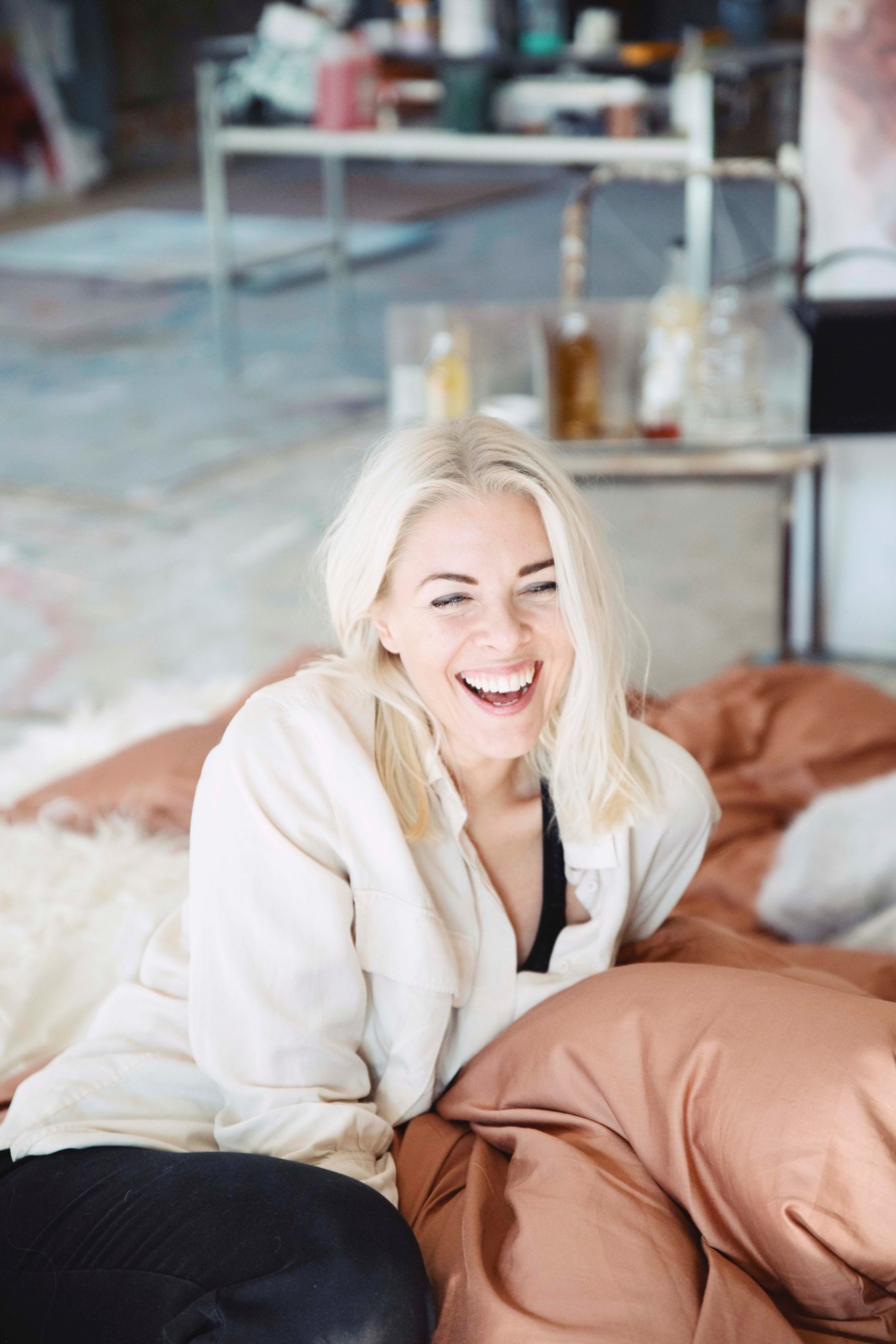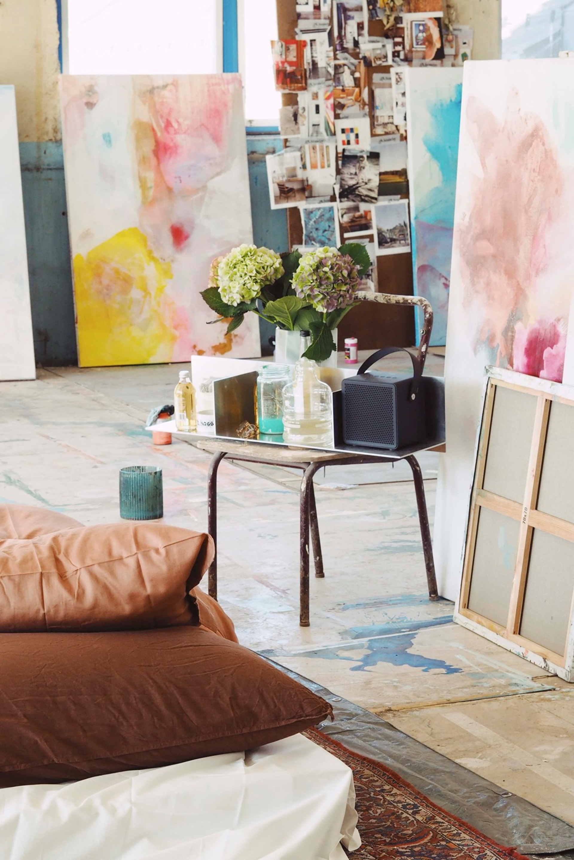 I et gammelt industrilokale, har kunstner Kristine Skadberg Hasseløy skapt sitt drømmerom. I hennes boble er det rom for fargene hun elsker. Kristines atelier er i en nydelig harmoni, mellom det energiske og kreative, og det lette og rolige. I samarbeid med Camilla Pihl-redaksjonen, forteller Kristine Skadberg Hasseløy om sine kveldsrutiner, i en sjarmerende pillowtalk.