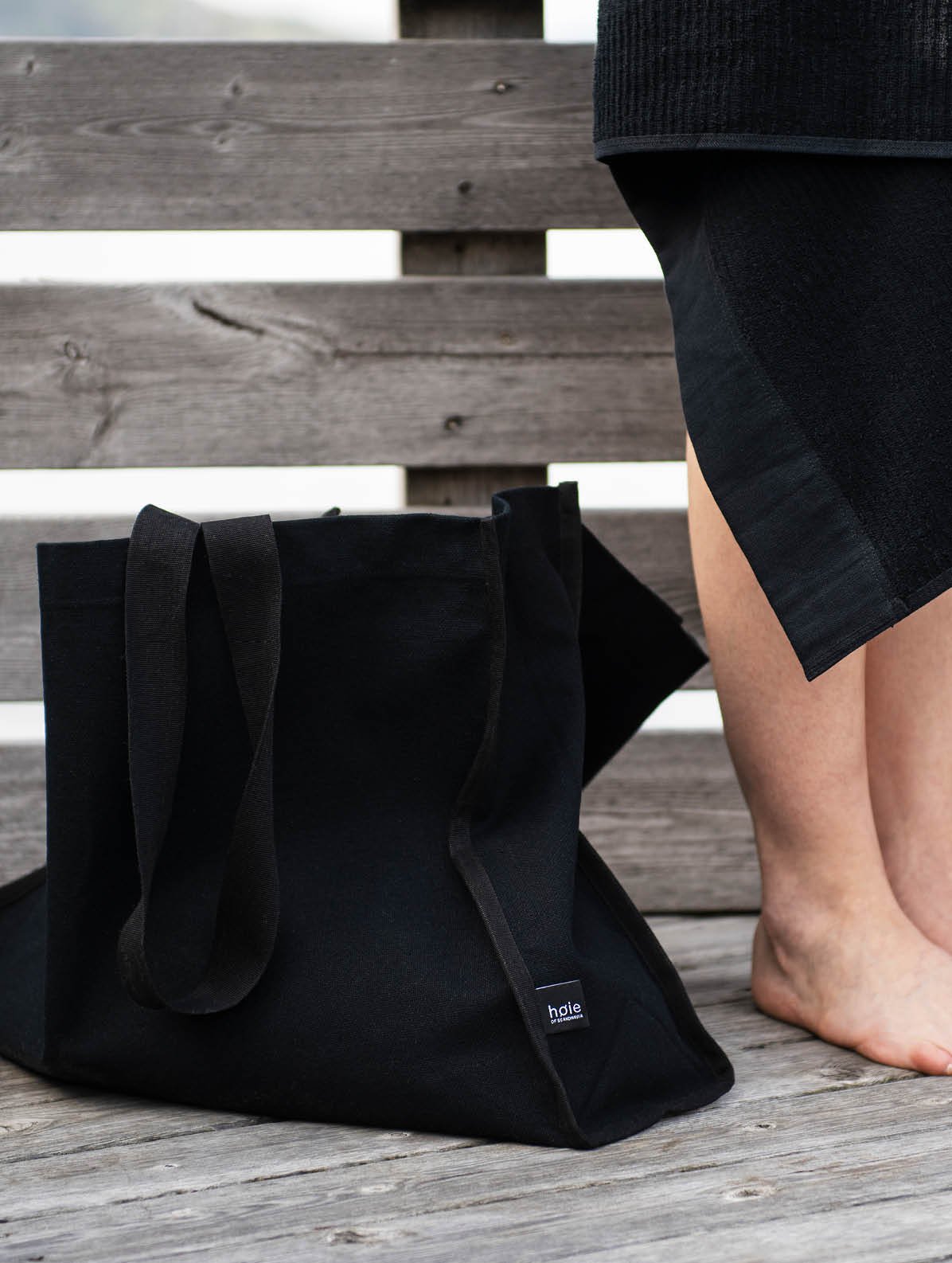 Atlantic beach bag er en romslig og slitesterk strandbag laget av kraftig canvas. Den kommer med en avtagbar liten veske for oppbevaring av telefon, nøkler eller bankkort – perfekt til sommerens små og store utflukter. I tidløs sort passer vesken like godt til strandturen som til hverdagsbruk.
