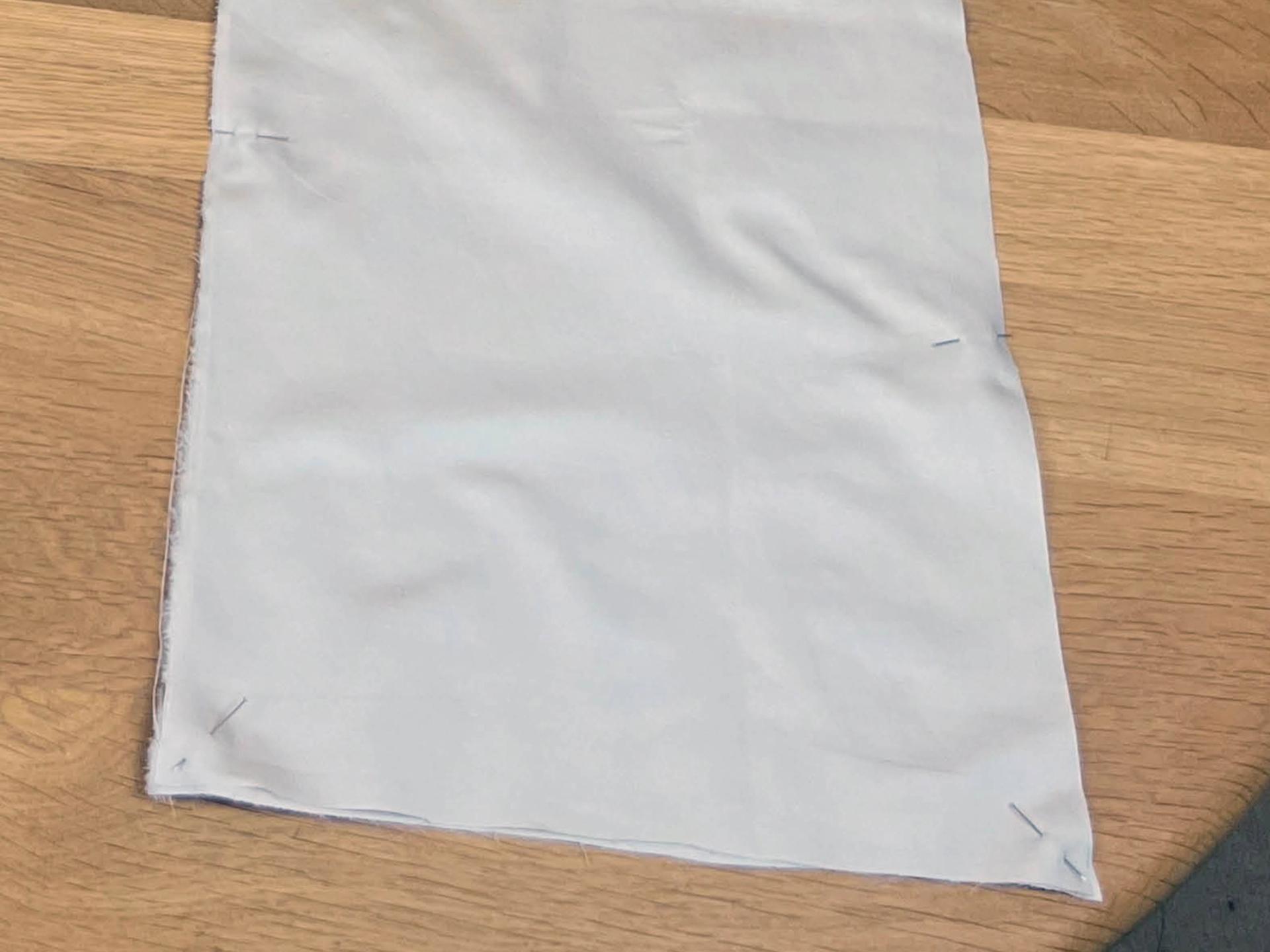 Legg de to stoffbitene oppå hverandre med rettsiden av stoffet mot hverandre.