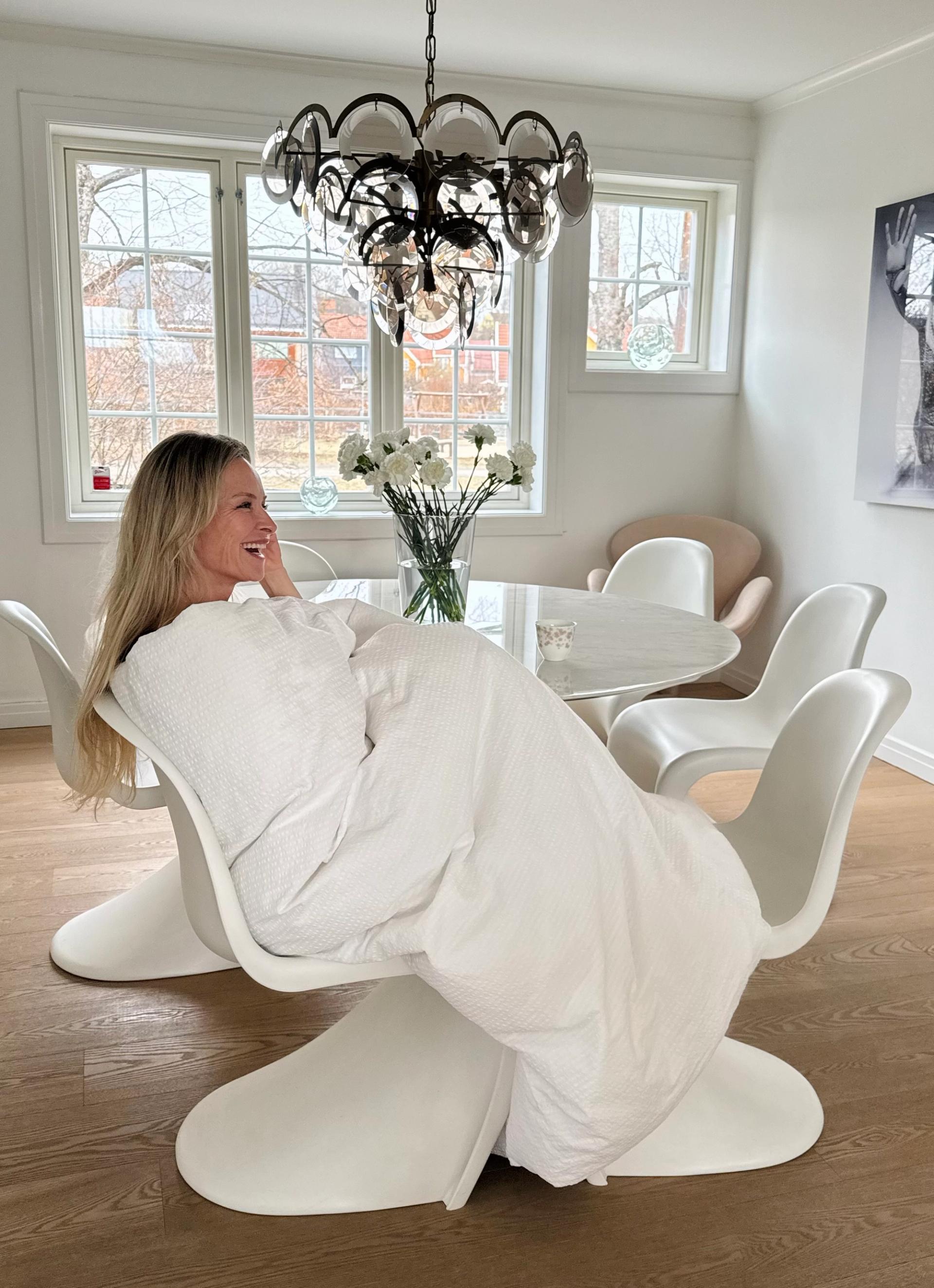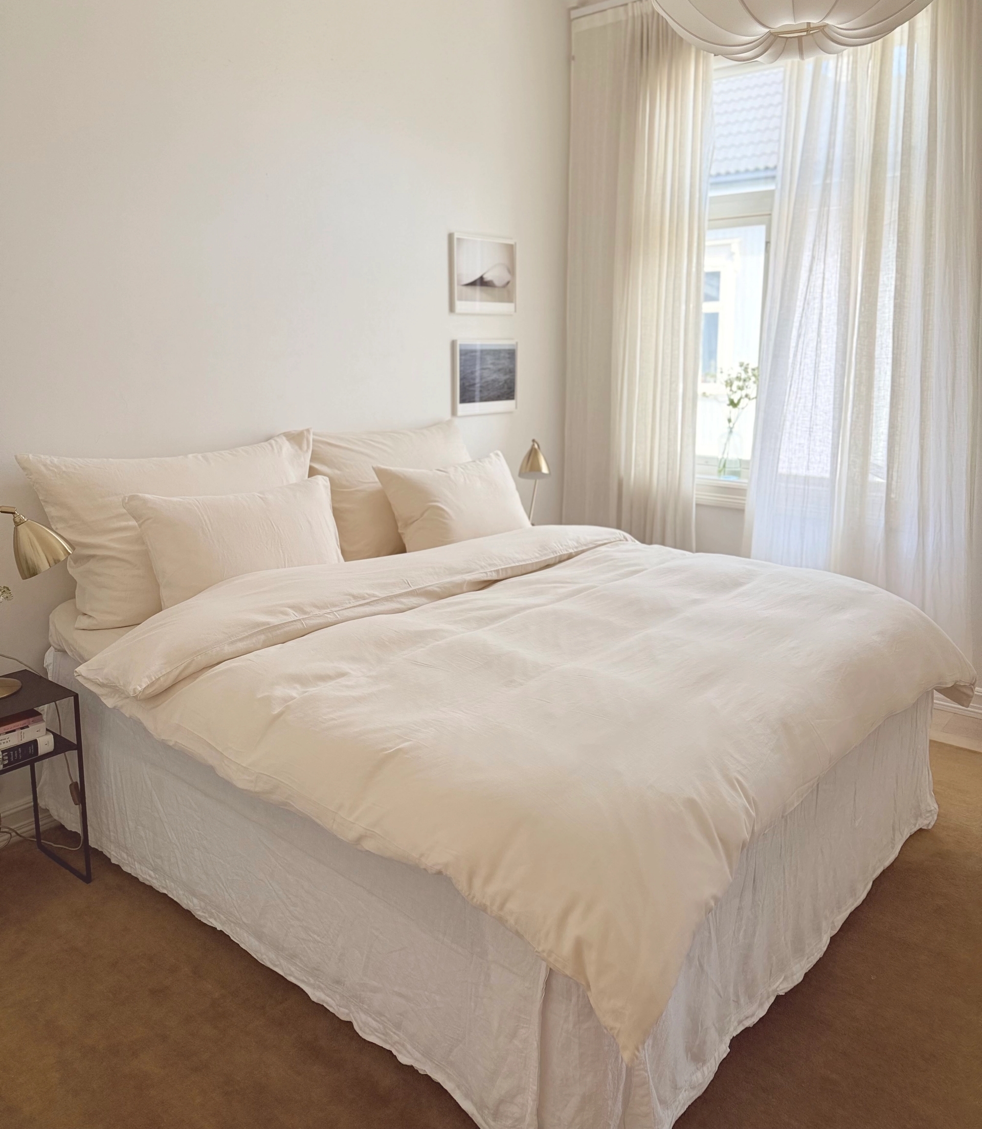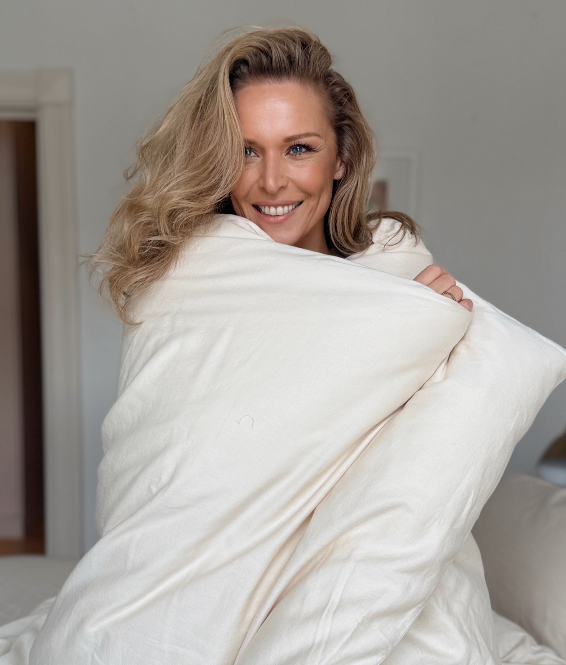 Vanessa foretrekker det ekstra myke Harmoni-sengesettet i fargen Elfenben – både fordi det gir varme til rommet, og fordi det tar seg pent ut når dyna får være med ut i sofaen.