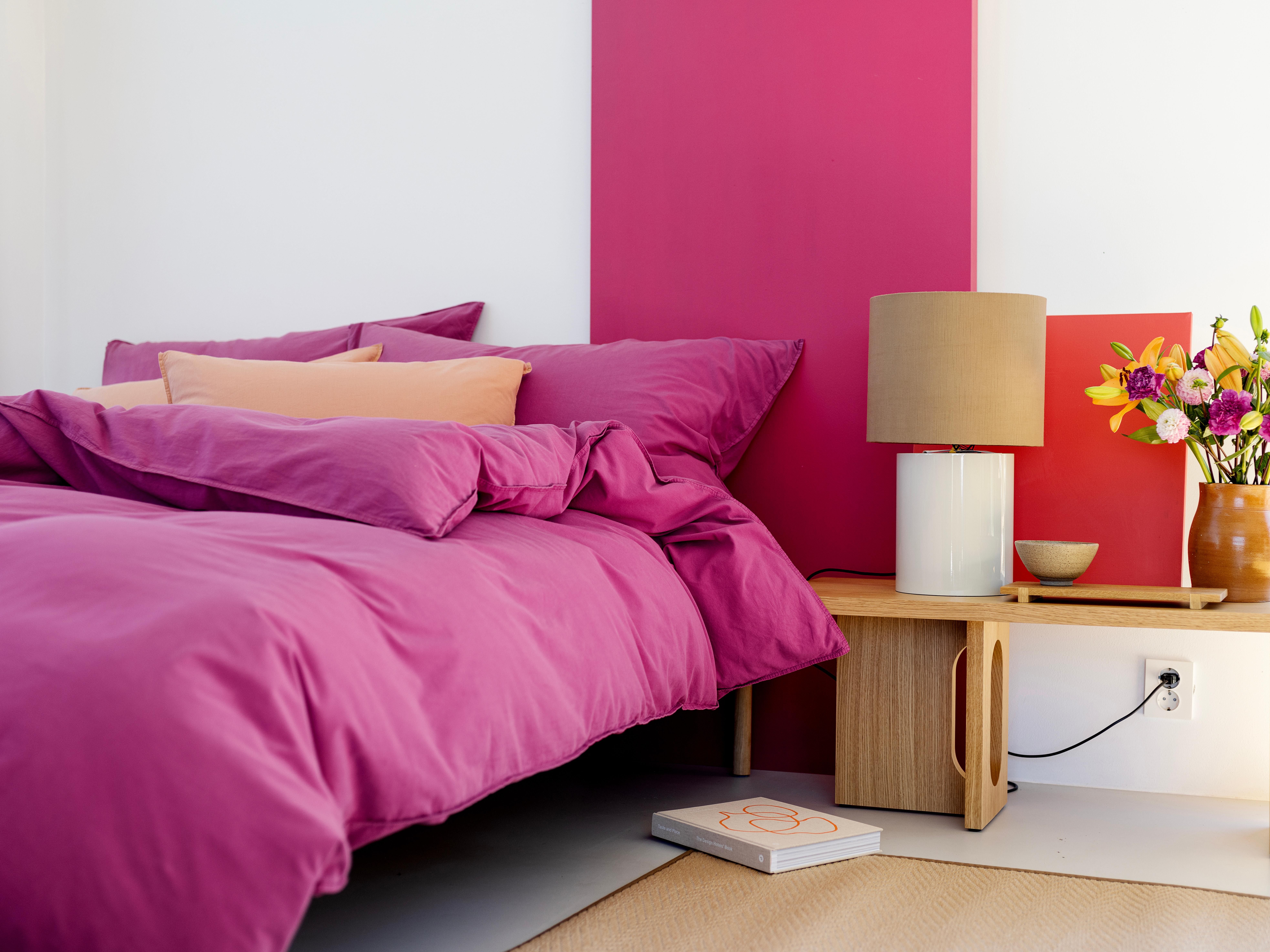 Rosa og oransj er farger som er perfekt å kombinere med hverandre for et friskt og fargerikt uttrykk. Farger er ikke bare for den vågale. I et minimalistisk og nedtonet soverom er et fargesterkt sengetøy en spennende og uventet kontrast.